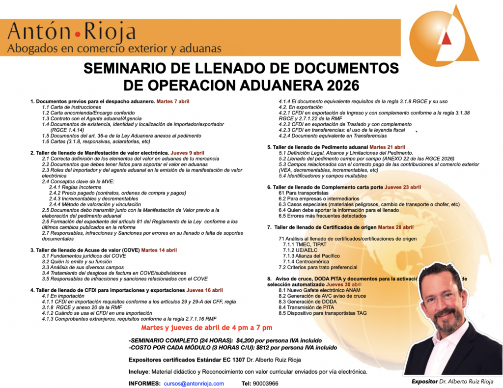 SEMINARIO DE LLENADO DE DOCUMENTOS DE OPERACION ADUANERA 2026