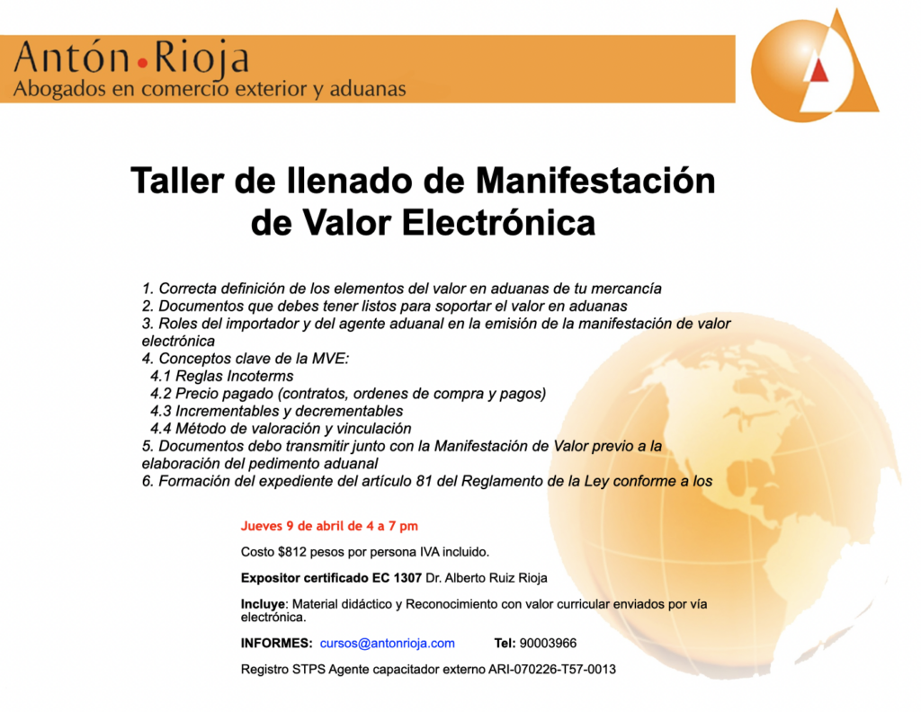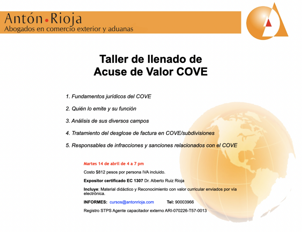 Taller de llenado de Acuse de Valor (COVE)| Apr 14 16:00