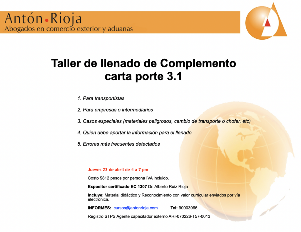 Taller de llenado de Complemento Carta Porte | Apr 23 16:00