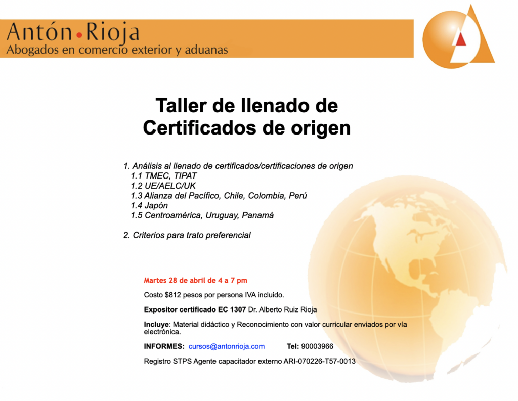 Taller de llenado de Certificados de origen | Apr 28 16:00