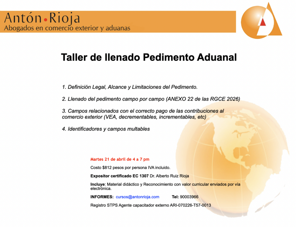Taller de llenado de Pedimento aduanal | Apr 21 16:00