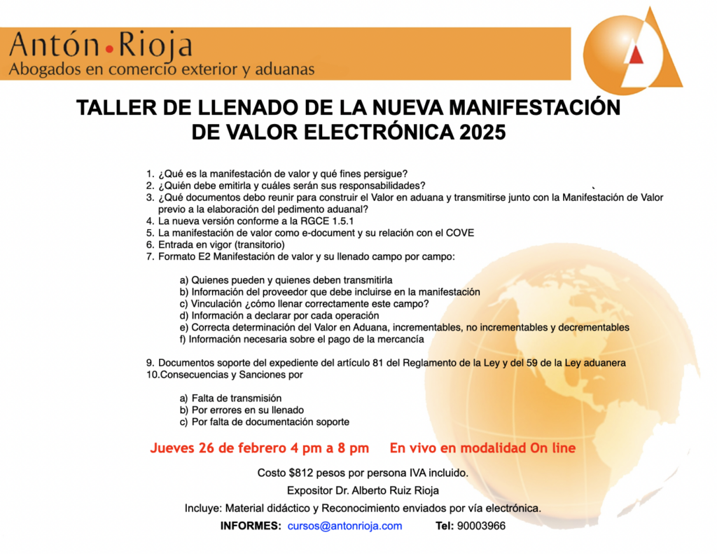 Precio $812 MXN Precio por persona IVA incluido. Datos de pago Datos del Curso Registro y pago Temario Expositor Dr. Alberto Ruíz Rioja Doctor en derecho, Maestro en derecho del comercio internacional, Licenciado en Derecho, Contador, Especialista en amparo, Certificado en clasificación arancelaria. Cuenta con mas de 33 años de experiencia en la consultoría, capacitación […]